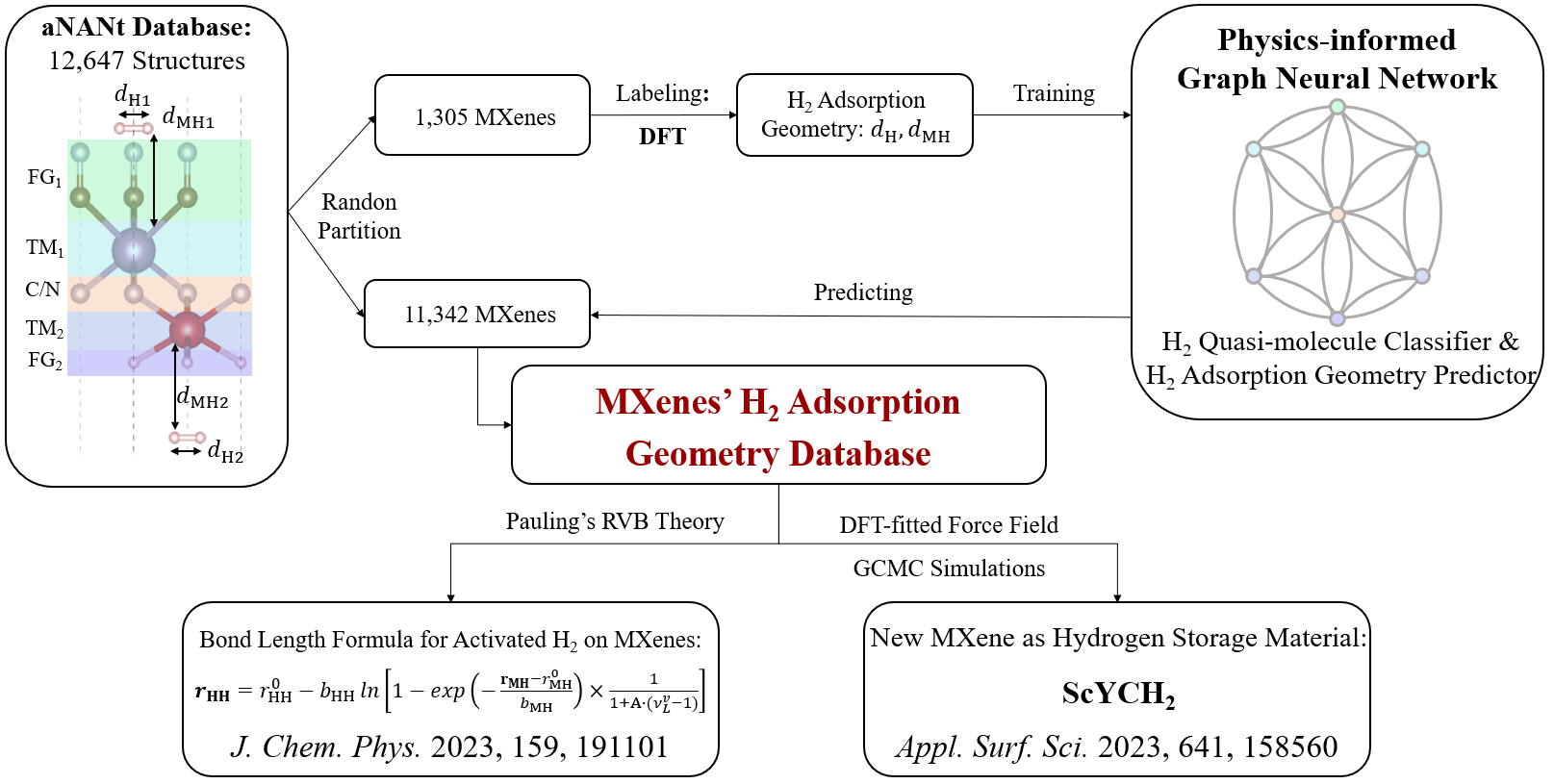 - J. Cheng, T. Li, Y. Wang, A. H. Ati, Q. Sun*, High-throughput screening of MXenes for hydrogen storage via graph neural network. Appl. Surf. Sci. 2023, 641:158560